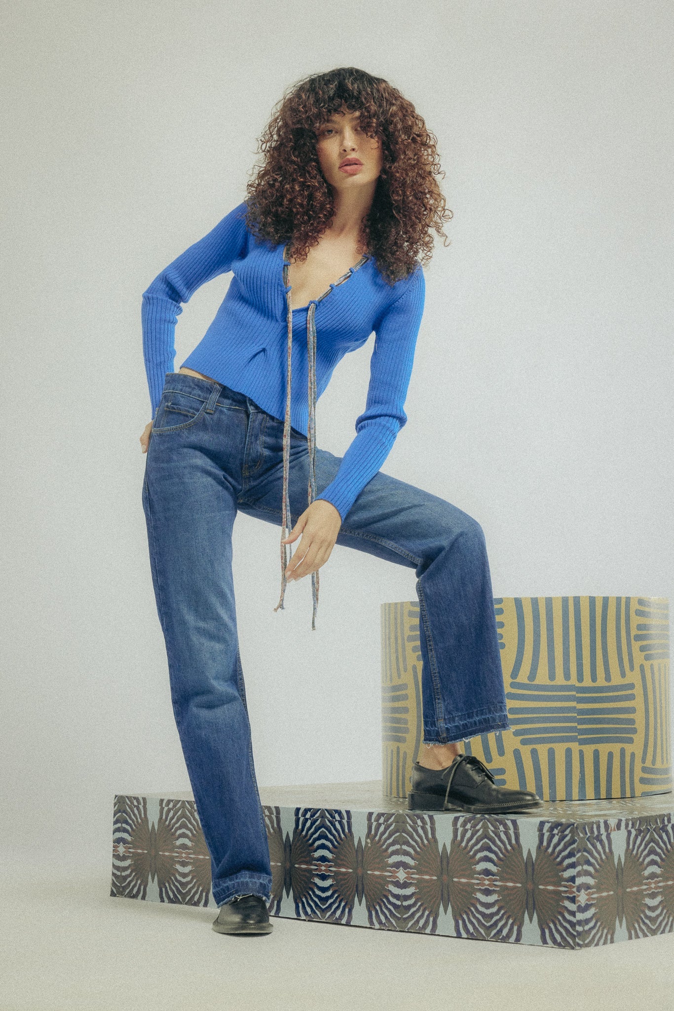 Wide Leg Mixed Blues Foil